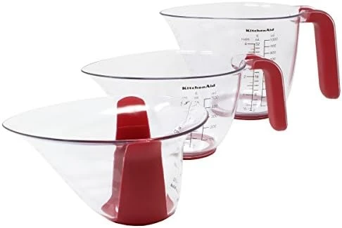 - ORGANIZED STORAGE: The Set of 3 measuring jugs nest together for space-saving, compact storage.