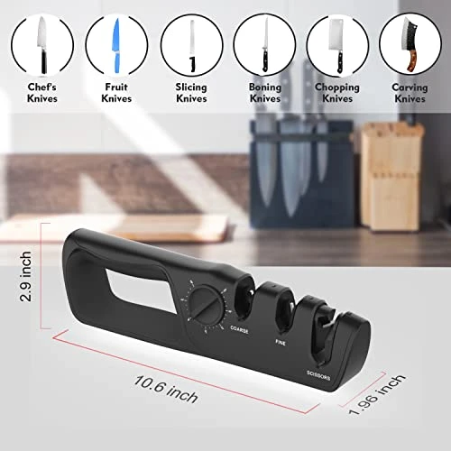- Versatile: Not only can this sharpener be used on variety knives, but it also has a dedicated scissor sharpening mode for added convenience.
