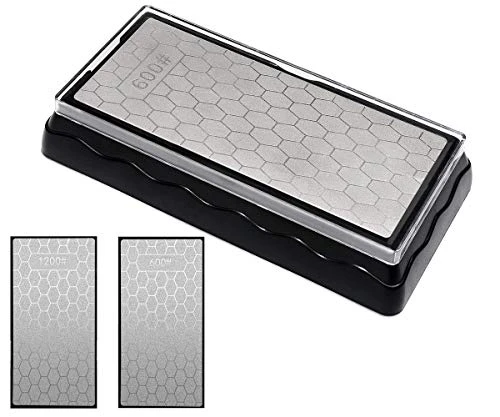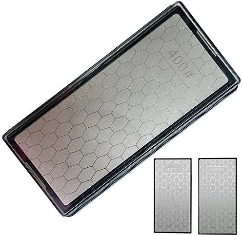 - Diamond grindstone, coarse grinding and fine grinding combine, first coarsely grind for polishing.Place the knife on the diamond surface and keep an angle for about 30°. Move back and forward for several times, then change the other side of the knife and repeat the same process.Start with 600# first and repeat on the 1200# side.