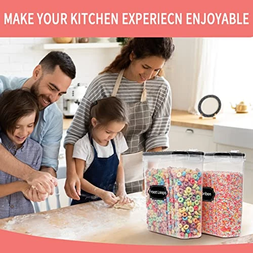 - Innovative Design – These cereal storage containers have a unique design. There are holes in the lid, so you can pour out food easily without opening the whole lid. In order to enhance the sealing ability of these plastic food storage containers for pantry, we added a silicon seal around the opening of the flip lid.