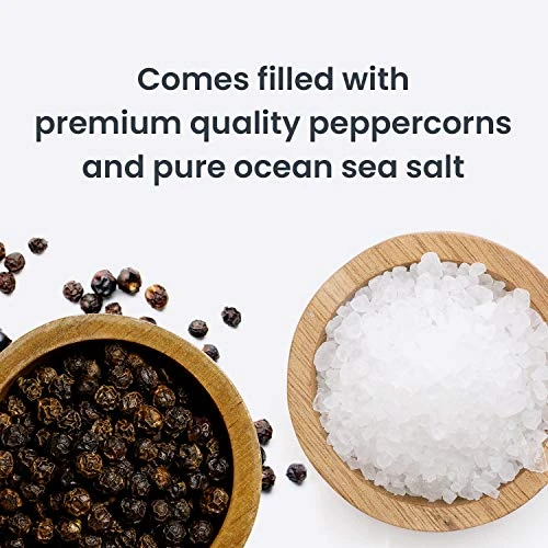 - Ready out of the box: Comes filled with premium quality whole peppercorns and pure sea salt, perfect for meat, soup, vegetables, or any meal that needs a boost of flavor.