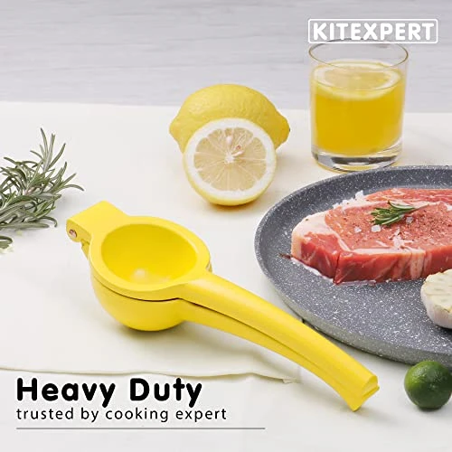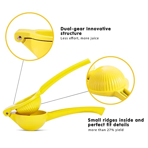 - HEAVY-DUTY METAL MATERIAL – This lemon juicer squeezer is made with sturdy industrial aluminum and a protected coating, which is secure and reliable. It’s a perfect metal composition for anti-corrosion or rusting in reaction to juices.