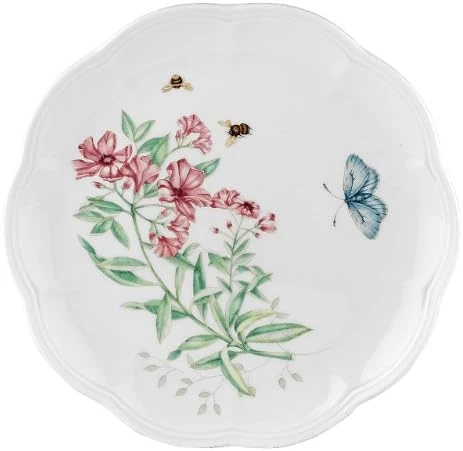 - Floras and butterflies in exquisite colors adorn each scalloped piece