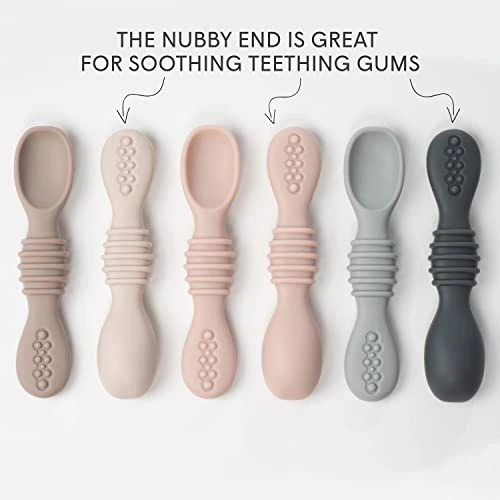 - The Perfect Size for Little Hands – A ribbed handle means your child can comfortably grip this silicone baby spoon as they learn to eat. There’s also a textured end that’s gentle on teething gums.