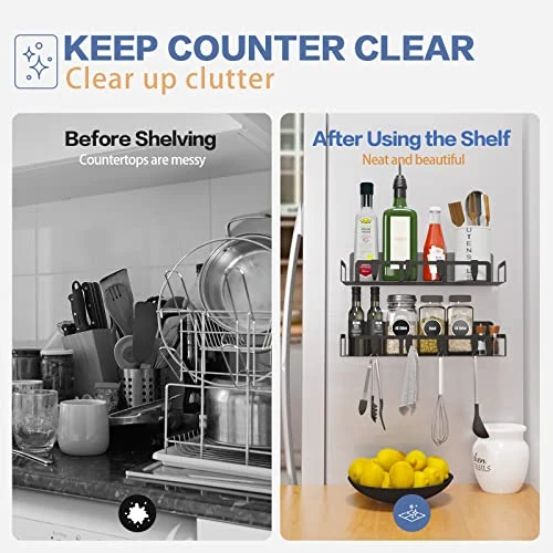 Be the first to review “LokRoad Magnetic Spice Rack For Refrigerator, 2 Pack Moveable Magnetic Fridge Shelf With 8 Hooks And Strong Magnet, Black” Cancel reply