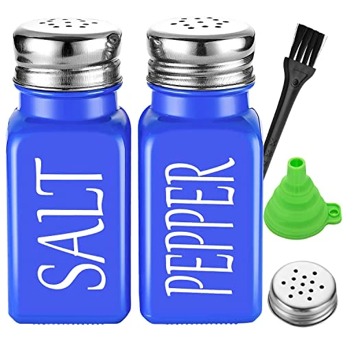 - 🎄Refilling blue salt and pepper shakers is easy! Simply unscrew the stainless steel lid for quick and easy filling, or use the folding funnel to fill without worrying about spills or messes. (Please note: salt and pepper shakers do not contain salt and pepper)