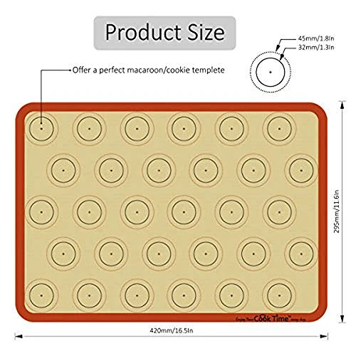 - ❤MULTI-PURPOSE USE:Cook Time macaron sheet liner are 0.75mm thick silicone including full silicone coated edges to protect the fibre glass core and extend shelf-life and durability.Our cooking mats stand temperatures from freezing up to 250°/480°F!Perfect for baking, kneading, rolling, candy/macaroon/pastry/cookie/bun/bread making as well as for freezing meat balls, dumplings, fruits and vegetables.