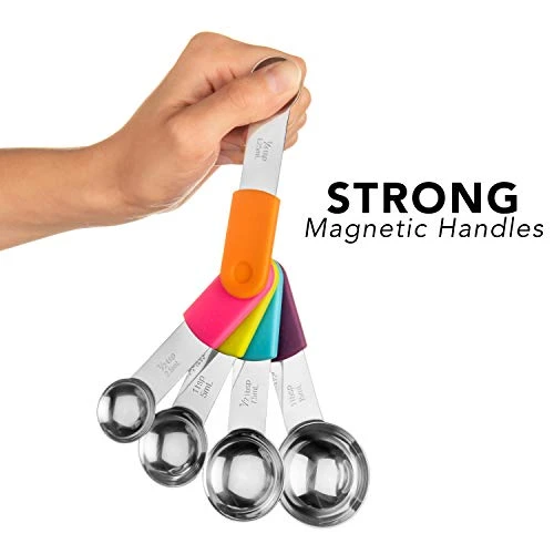 - GET MORE BANG FOR YOUR BUCK: Our measuring cups set includes one 1/8 1⁄4 cup, 1⁄3 cup 1⁄2 cup, 2/3 cup, 3/4 cup, 1 cup, 1⁄4 teaspoon, 1⁄2 teaspoon, 1 teaspoon, 1⁄2 tablespoon, 1 tablespoon and 1 magnetic conversion chart.