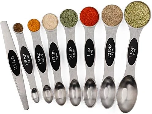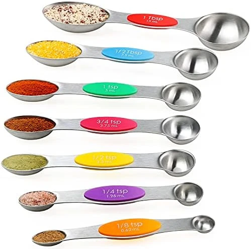 - DUAL-ENDS FOR MEASUREMENT: Double Sides Measuring Spoons use many times fine polishing,make the edge of the spoon smoother for measuring the dry and liquid items both.that are perfect for measuring different ingredients, Good use for home,kitchen,cooking,baking.