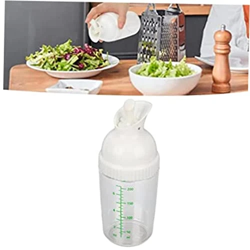 Introduction: The Salad Dressing Shaker is a kitchen tool designed for multi-purpose useMade of high-quality ABS+PP material, it can hold up to 200ml of dressing and has a large opening that perfect for mixing, serving, and storing condiments, sauces, and marinadesThis leak-proof salad container features an elegant oil bottle and dispenser without a drip spout and a convenient stopper capIt easy to operate with one hand, simply flip back to pour and seal forwardThe shaker also comes with a lid, marked with measurements in cups, ounces, and milliliters, making it perfect for dressings such as soy sauce, vinegar, oil, and moreBPA-free and dishwasher safe, this salad dressing mixer is perfect for those who value and convenienceOther related product keywords include Leak-Proof Salad Container, Kitchen Storage Containers, BPA-Free Kitchen Tools, and Salad Dressing Dispenser. How to Use:, 1.Mixing:Pourinthedesiredingredientsinturnforseasoning, 2.Shake:Startshakingthebottlelikeabartender, 3.Pourout:openthetopopeninglevertopouroutthecontents , Specification:, Item Type: Salad Dressing Shaker, Material: ABS+PP, Capacity: 200ml, Gross Weight: Approx. 144g/5.1oz, Package List:, 1 xSaladDressingShaker