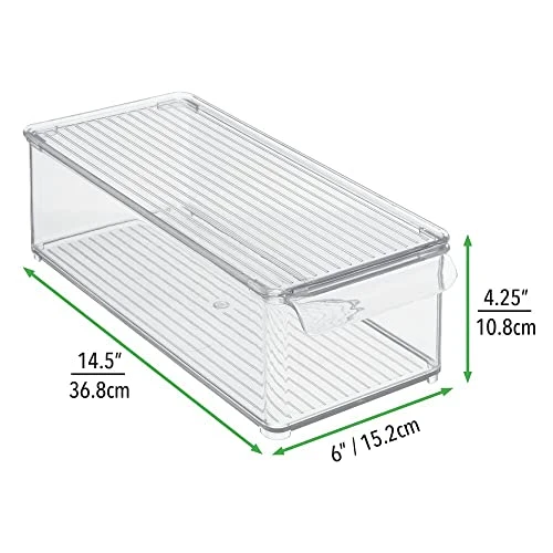 - PORTABLE & STACKABLE: Bin features an easy-pull handle to make it simple to grasp and transport goods from pantry to shelf to table; Just grab and go; The lid makes this storage basket stackable, and it’s the perfect storage and organizing solution for modern kitchens and pantries; Try in the cabinet or cupboard, under your sink for cleaning or dish washing supplies, or for storing boxes of kitchen liners and garbage bags