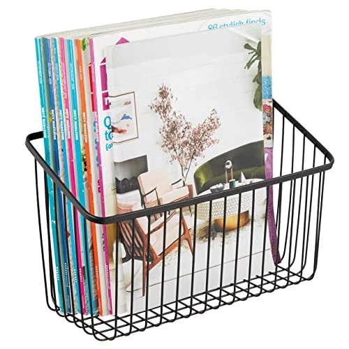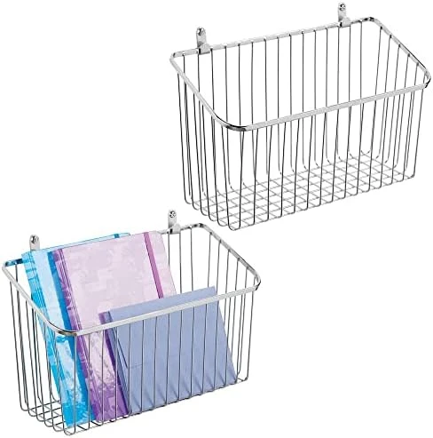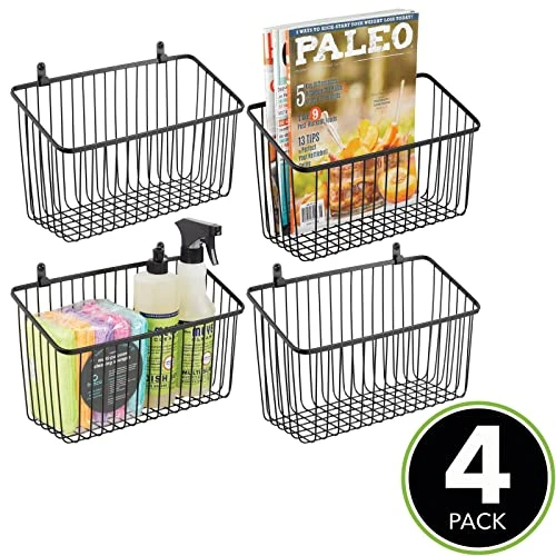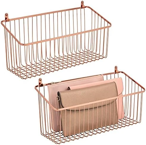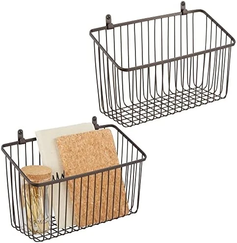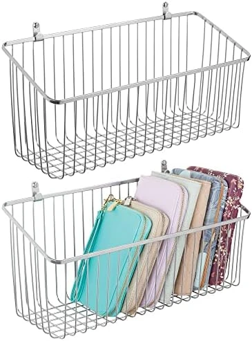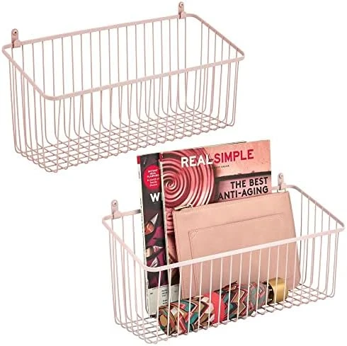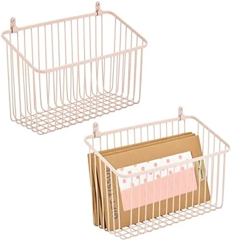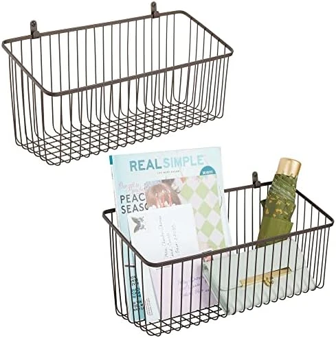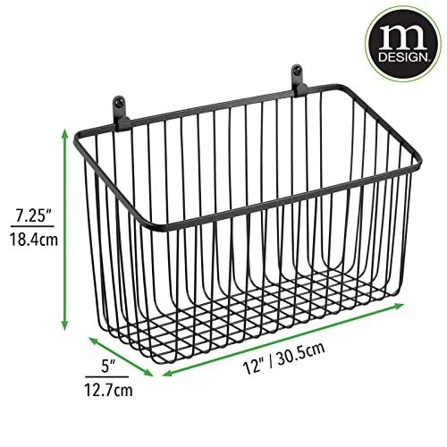 - WALL MOUNT: This wide basket with an accessible top opening is a great way to maximize unused wall space anywhere in the home; The hooks mount to the wall with included hardware, then just hang the basket and you are ready to go; mDESIGN TIP – Use several of these basket organizers to create storage centers in mudrooms, entryways, laundry rooms and home offices; Mix and match with other sizes to create a drop-station system that works for you