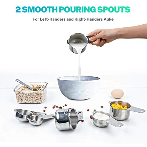 - Cups combination: 1/8 cup (30ML), 1/4 cup (60ML), 1/3 cup (80ML), 1/2 cup (120ML), 2/3 cup (160ML), 3/4 cup (180ML), 1 cup (240ML)