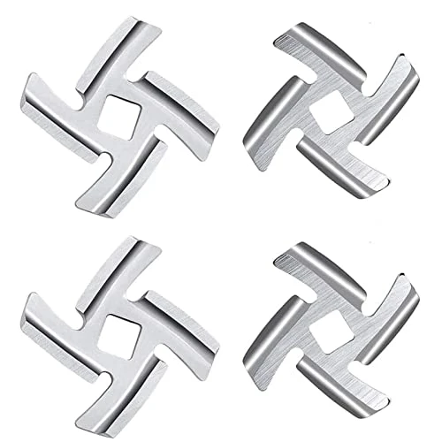 - Size: the meat grinder plate discs measure approx. 54 mm/ 2.12 inches in diameter, the central hole is about 7 mm/ 0.28 inches, the diagonal length of grinder blades has 2 sizes: approx. 48 mm/ 1.89 inches and 50 mm/ 1.97 inches, the central hole of grinder blades is about 8 mm/ 0.31 inches
