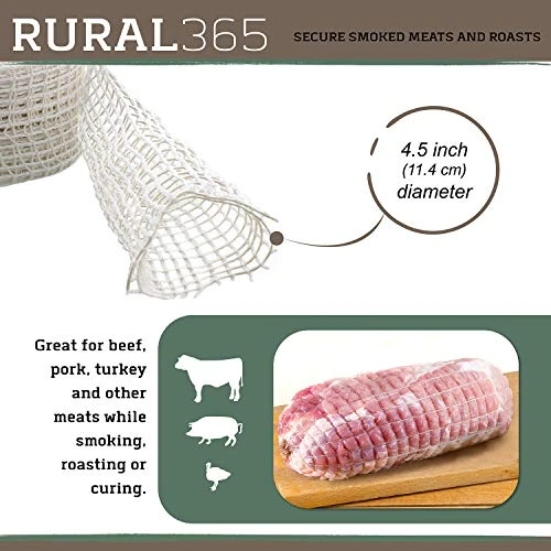 - [Elastic Meat Netting]: Smoking netting bag includes 3 stitch 16 square count; With a working diameter of 4.5 inches (11.4cm), this meat curing netting is often used for boneless pork loin, boneless turkey breast, flank steak, veal roast, bologna