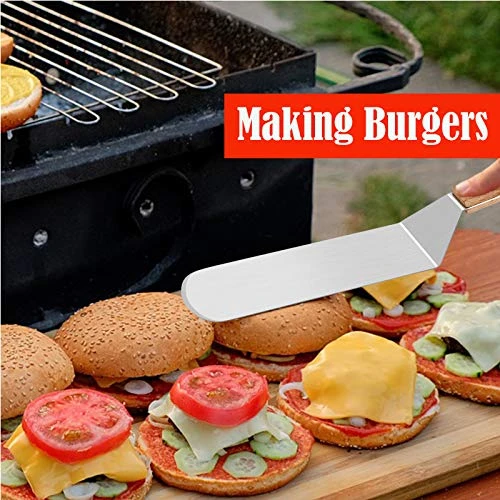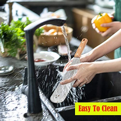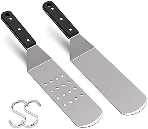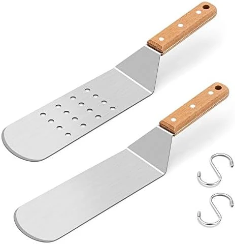 - ERGONOMIC DESIGN – Total length is 14.2in and metal width is 3in, Stay balance very well on any flat top griddle, teppanyaki, hibachi or cast iron skillet, Ergonomic handle provide you a comfortable feeling, 45° angled structure save time and energy while cooking