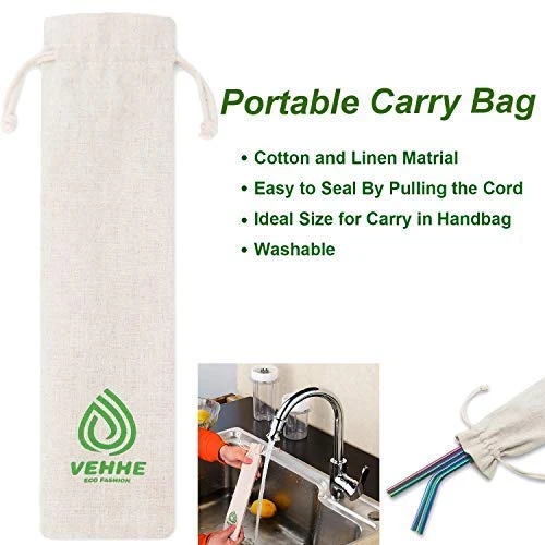 - PORTABLE BAG & MULTI – FUNCTIONAL: Modern and sleek design, with the Cotton and Linen Material bag, this drinking stainless steel straws is easy to carry by your handbag and it is easy to seal by pulling the cord. These colored metal straws look equally beautiful in a cocktail or a smoothie, which add fun to any party, trendy for family reunion, girls night out,cocktail party, picnics, boating and so on.