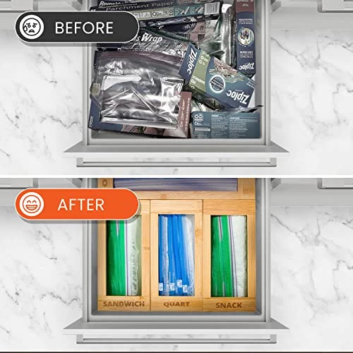 - Transform Your Kitchen – Elevate the feel and look of your kitchen with our plastic bag storage organizer. Our kitchen drawer organizer set is made of durable premium laminated MOSO bamboo for a timeless look.