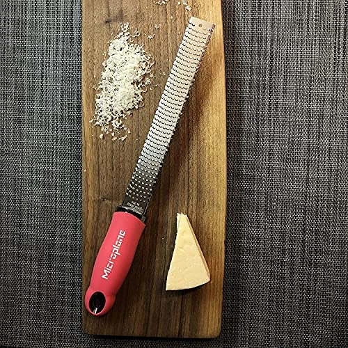 - Made in the USA: Microplane uses photo-etched technology to make ultra sharp grating blades right here in America! Made of surgical grade stainless steel this material stays rust-free and maintains sharpness over time. True stainless steel is magnetic, so this item can be hung on your magnetic knife strip. Non-scratch end tabs help protect counter tops.