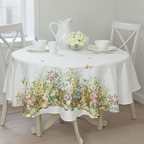 - Fabric Content: 100% Treated Polyester Easter Tablecloth