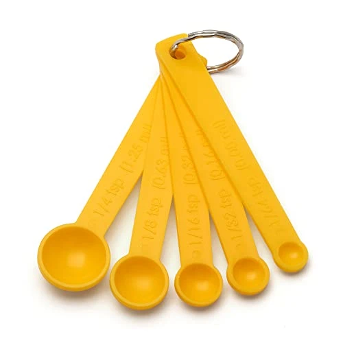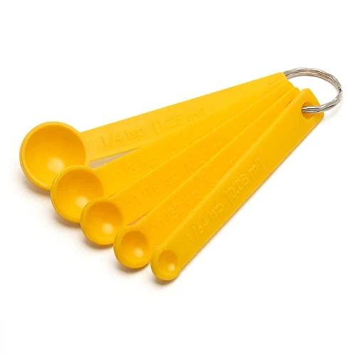 - Details: Set of 5 plastic yellow spoons: 1/64tsp (0.08ml), 1/32tsp (0.16ml), 1/16tsp (0.32ml), 1/8tsp (0.63ml) and 1/4tsp (1.25ml). Length: 3.74inch (9.5cm).