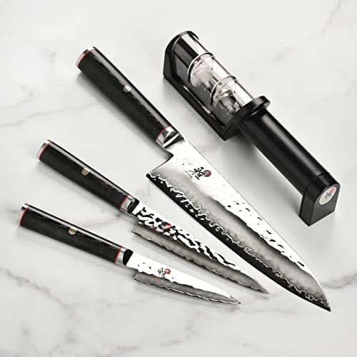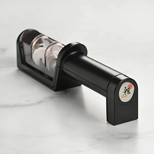 - Traditional Honbazuke sharpening method that originated from traditional Japanese sword making; 3-step process that produces a razor sharp 12 degree double bevel edge