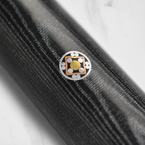 - Durable Micarta D-shape handle with bolster and metal end cap for the perfect comfort and balance; decorative mosaic pin, red spacers and Miyabi logo engraved on handle end