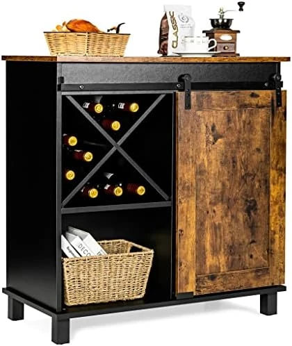 - Spacious countertop, 3 shelves and storage cabinets provide ample storage space, removable X-shaped wine rack for bottles and other needs