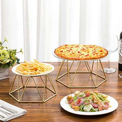 MyGift Brass Plated Metal Pizza Table Stand, Pizza Box Riser, Restaurant Pizza Server Stand, Platter Riser, Set Of 2 – Handcrafted In India