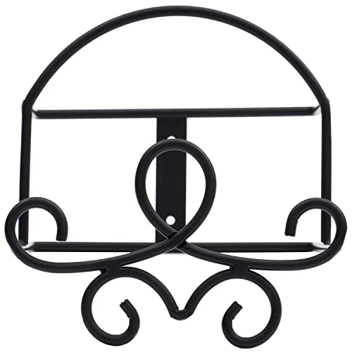 Display and showcase your collectible plates, saucers, bowls and platters as works of art with this wall mounted 2 tiered black metal double plate rack with vintage scrollwork design. With a staggered display design, this rack shelf can hold 2 plates at a time while letting both of the beautifully decorative plates be seen. Showcase a matching set or coordinating designs in your kitchen, dining room, or retail setting. The wire frame can accommodate plates with up to a 10 inch diameter, making is great for dinner, salad, dessert plates or tea saucers.. Also great for holding and displaying photos, picture frames, books, artwork, or cookbooks. This wall mounted 2 tier black metal staggered vertical display double plate rack easily mounts to most flat wall surfaces with the proper hardware to safely and securely hold your plates while adding decorative vintage display to any wall in your kitchen, dining room, or restaurant.