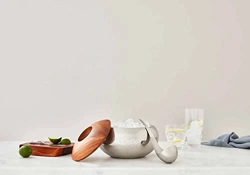 - PRODUCT SPECIFICATIONS: Package contains (1) Nambe Scoop Ice Bucket. Mid-Century Modern décor style. Made of stainless steel and Acacia wood. Bucket measures: 9” D x 5.7” H. Scoop measures: 8” L x 2.75″ W. Dishwasher safe. Designed by Wei Young in 2013 as a part of the Gourmet collection