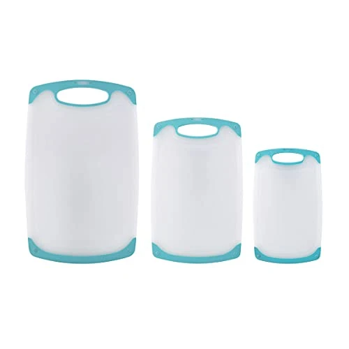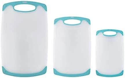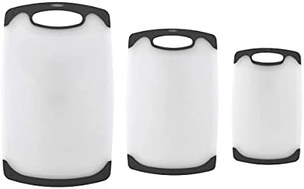 - BPA-FREE: This cutting board set is made of BPA free, polypropylene plastic. The poly material is non absorbent, non porous, and will not harbor odors, stains, or harmful bacteria. It is gentle on knives, keeping their blades from getting dull quickly