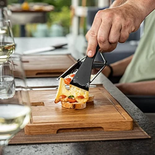 - SIMPLE TO CLEAN: the non-stick coating and perfectly fitting spatula make the raclette set easy to use and quick to clean afterwards