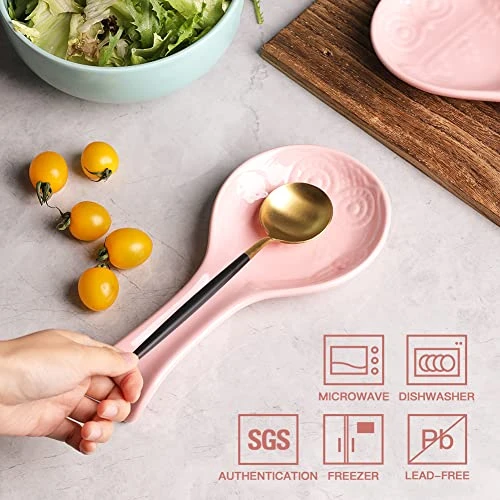 - Professional Grade Porcelain – These spoon rests are made of durable porcelain which is sturdy. The long-lasting material blocks moisture absorption and prevents cracking, crazing and rippling. Robust enough to withstand the rigors of daily life.
