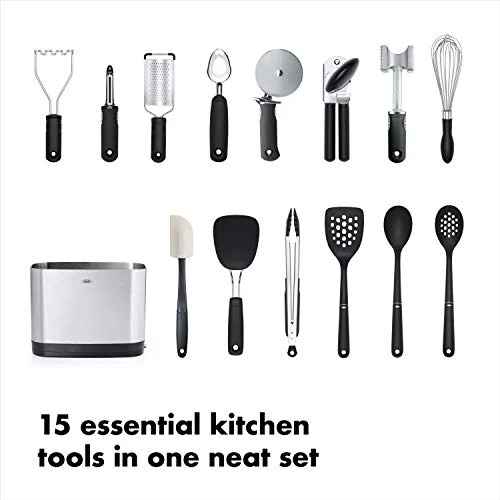 - Product 1: Also includes swivel peeler, ice cream scoop, potato masher, can opener, balloon whisk, spatula, meat tenderizer, pizza wheel, and holder