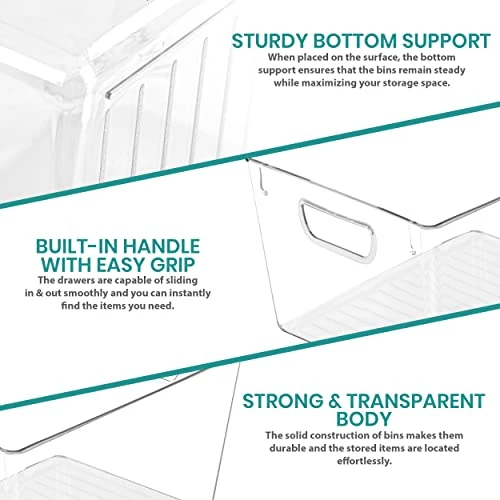 - DELIGHT IN THE DETAILS – The square patented acrylic organizers storage bins is uniquely crafted to cater to space- efficiency and avoids the enigma of storing your pantry, drinks, fruits, vegetables, yogurts, canned foods, baby food, condiments and bottled beers.