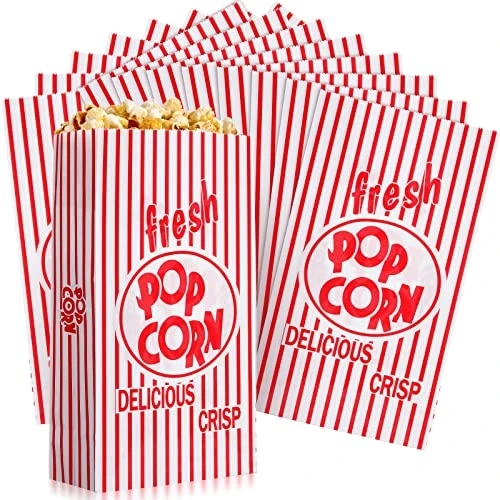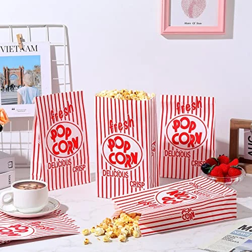 - Large Capacity: each paper bag for popcorn measures about 23 x 13 x 6 cm/ 9.1 x 5.1 x 2.4 inch, with a capacity of approx 2 oz,not only suitable for holding popcorn, but also proper for holding corn, potato chips, cookies, bread, fried chicken, biscuits and other snacks; The mouth of the bag can be folded at will, keeping your popcorn safe and fresh, and eat it anytime, anywhere
