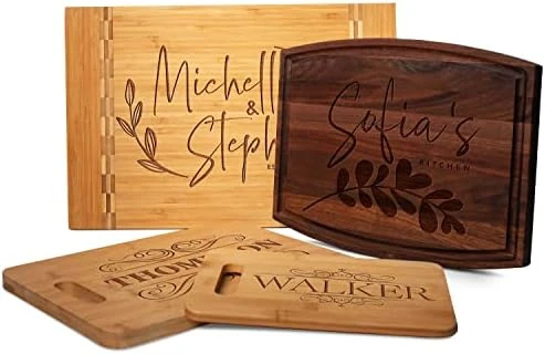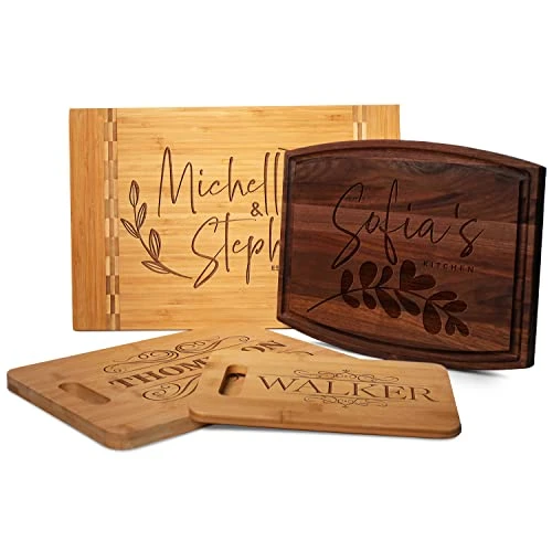 - MAJESTIC & ELEGANT DESIGNS: You have 11 DIFFERENT DESIGN OPTIONS in CUSTOMIZE NOW section. – We specialize in cutting boards for weddings gifts for couples, housewarming gifts for newlyweds, and Christmas gifts, with engraving options and texts. Moreover, you can choose the wood material and size you prefer from our customization menu.