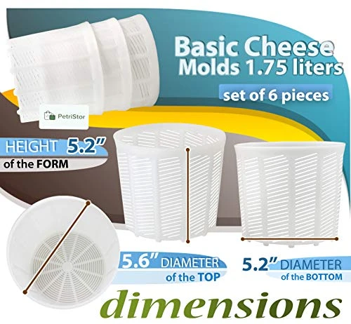 - Form for cooking in the home soft cheese, volume of 1.75 l. Diameter of the top 15.5 cm/ 6 inc, diameter of the bottom 13.5 cm/5.2 inc, height 12 cm./ 5 inc, weight 80 g/2.8 oz.