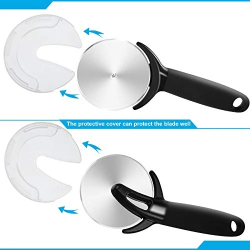 - ใErgonomic and Protective CoverใThe handle is made with non slip ABS padded and the ergonomic design aims to provide you with max comfort. Our stainless steel pizza cutter with protective cover will help you increase usage time of this sharp blades, but also very safe for you and your family.