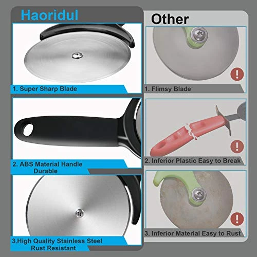 - ใEasy to Clean and StoreใHaoridul pizza cutter is heat resistant and very easy to clean. You can clean it by hand or in a dishwasher. No more worries about how to clean stuck food from your pizza wheel. Designed with a hanging hole for easy storage.