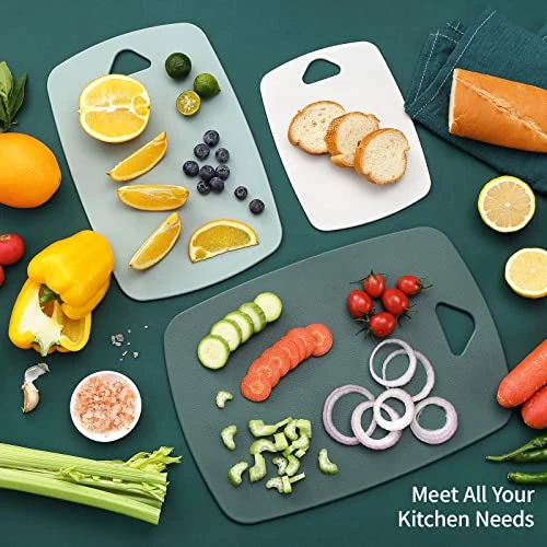 - 2.【Sturdy & Durable】The plastic cutting board with food grade high-density material, sturdy and durable. The surface won’t retain stains or odors for long- term use, won’t hurt knife blade.