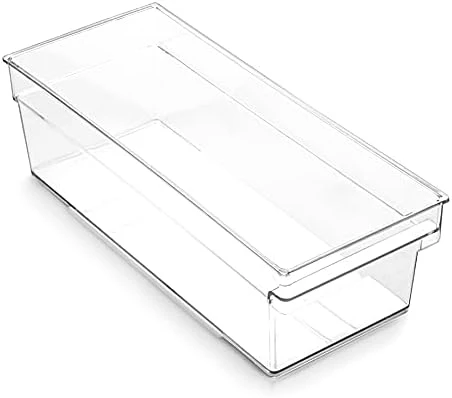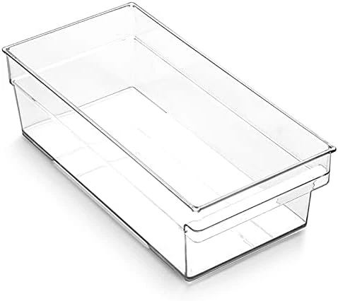 - Convenient Size: Our clear storage bins come in 9 different sizes. This deep, large bin measures approximately 14″ L x 8″ W x 8″ H and is ideal for storing various objects. Whether you use them as kitchen and fridge organizers, cabinet and drawer storage, pantry shelf bins, toy containers, or bathroom organizers, they won’t take up too much space and will assist you in keeping areas clutter-free.