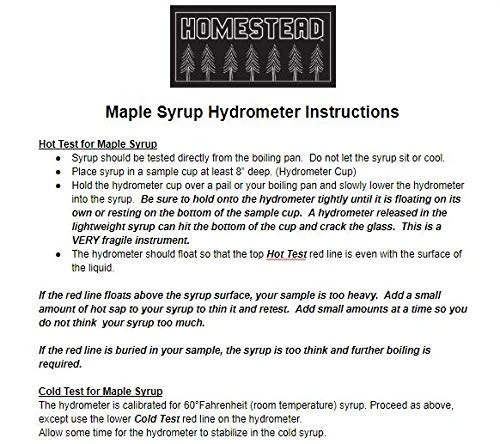 - MONEY BACK GUARANTEE – We are confident that you will have a great experience with the Homestead Maple Syrup Hydrometer. If Homestead Hydrometer fails to live up to your expectations, simply return it for a full refund.