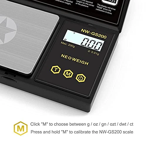 - โชEASY to USEโช jewelry scale features 3 buttons: “T” to zero the scale. “M” button๏ผโ click to choose weighing units among: gram, oz, grain, pennyweigh, dtw, ozt; โก press and hold to calibrate the tiny scale. Gram scales digital weight can meet your different demands.
