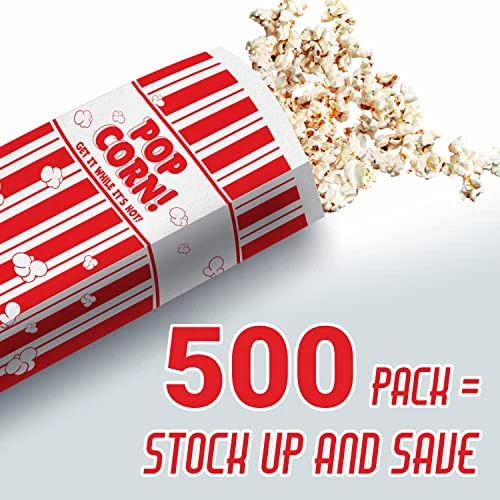 Popcorn Bags Coated For Leak/Tear Resistance. Single Serving 1oz Paper Sleeves In Nostalgic Red/White Design. Great Movie Theme Party Supplies Or For Old Fashioned Carnivals & Fundraisers! (500)