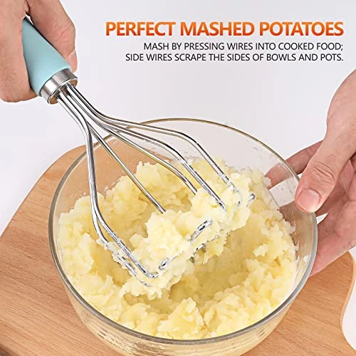 - HIGH-QUALITY MATERIALS: This potato masher kitchen toolx set is made of durable 304 stainless steel, Not easy to rust, so no need to worry about the safety of your family. with a soft-grip handle for comfortable use, the Masher can be used for a variety of everyday tasks in a wide array of recipes including mashed potatoes and other root vegetables, guacamole, bean dips and more.