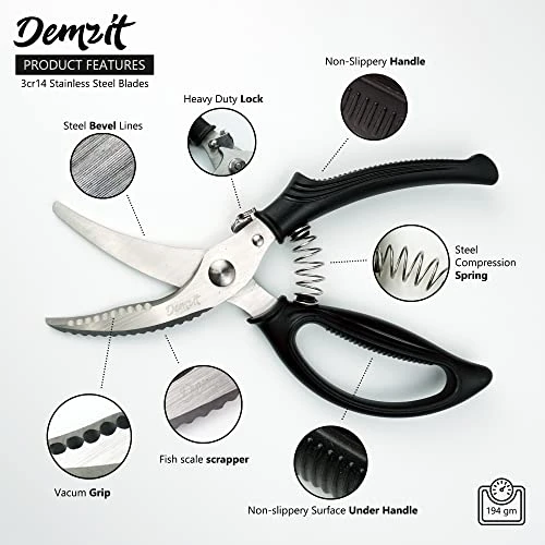 - EASY CLEANING: Keeping your heavy duty poultry shears clean is extremely easy. With Demzit shears, we recommend washing them with your hands, rinsing with tap water, then oiling them every 2-3 weeks.