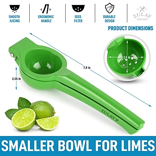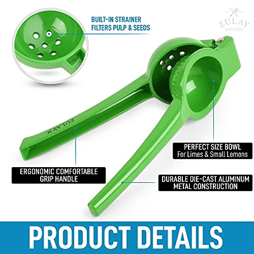 - Get The Most Out Of Your Limes: This Zulay Kitchen aluminum lime squeezer gets all of the juice out of your limes, even the hard ones that resist being sqeezed, without the pulp and seeds leaving the halves basically dry. No more bulky, hard-to-clean juicers crowding the decor of your home bar or kitchen. This citrus press is hand-sized and portable. Whether you’re a chef or want a pampered squeeze, you can now drink a fresh glass of lime juice in seconds.