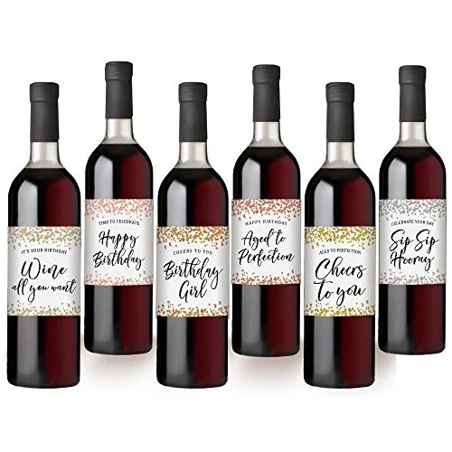 Printed Party Birthday Wine Bottle Labels, Confetti, Set Of 6